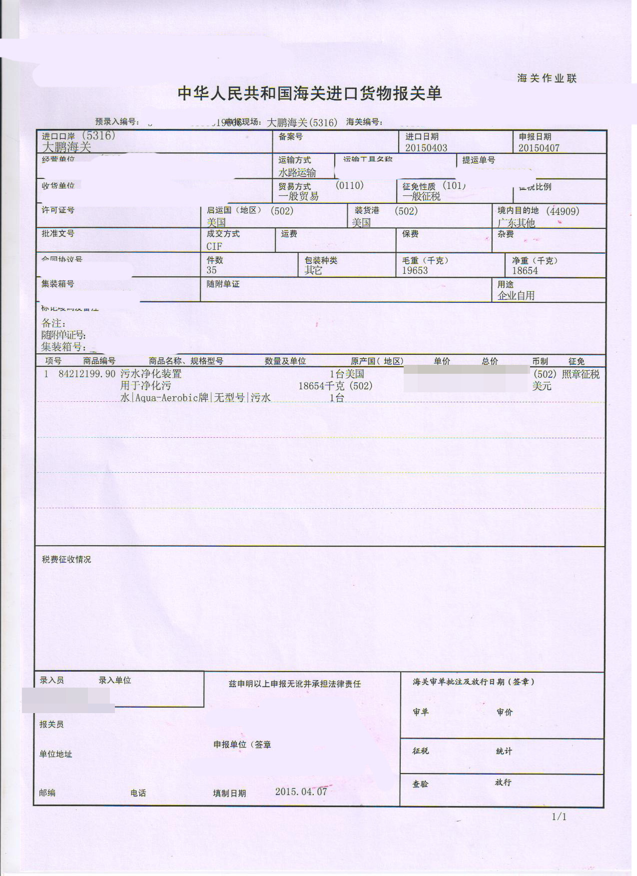 【文章標(biāo)題】:污水凈化裝置進(jìn)口報(bào)關(guān)案例 http://m.nhhzks.cn/lm5/108.html 轉(zhuǎn)載請注明出處
