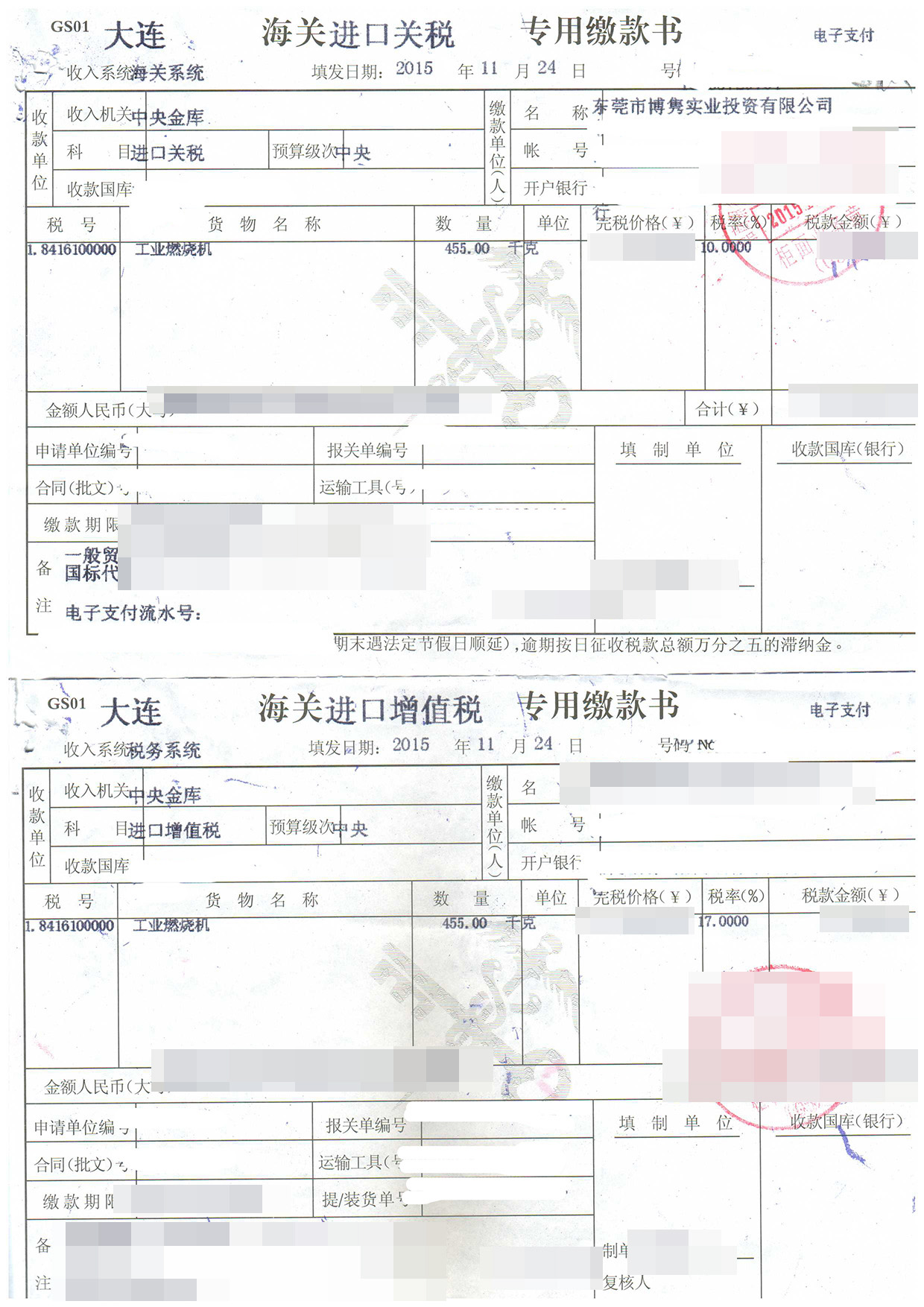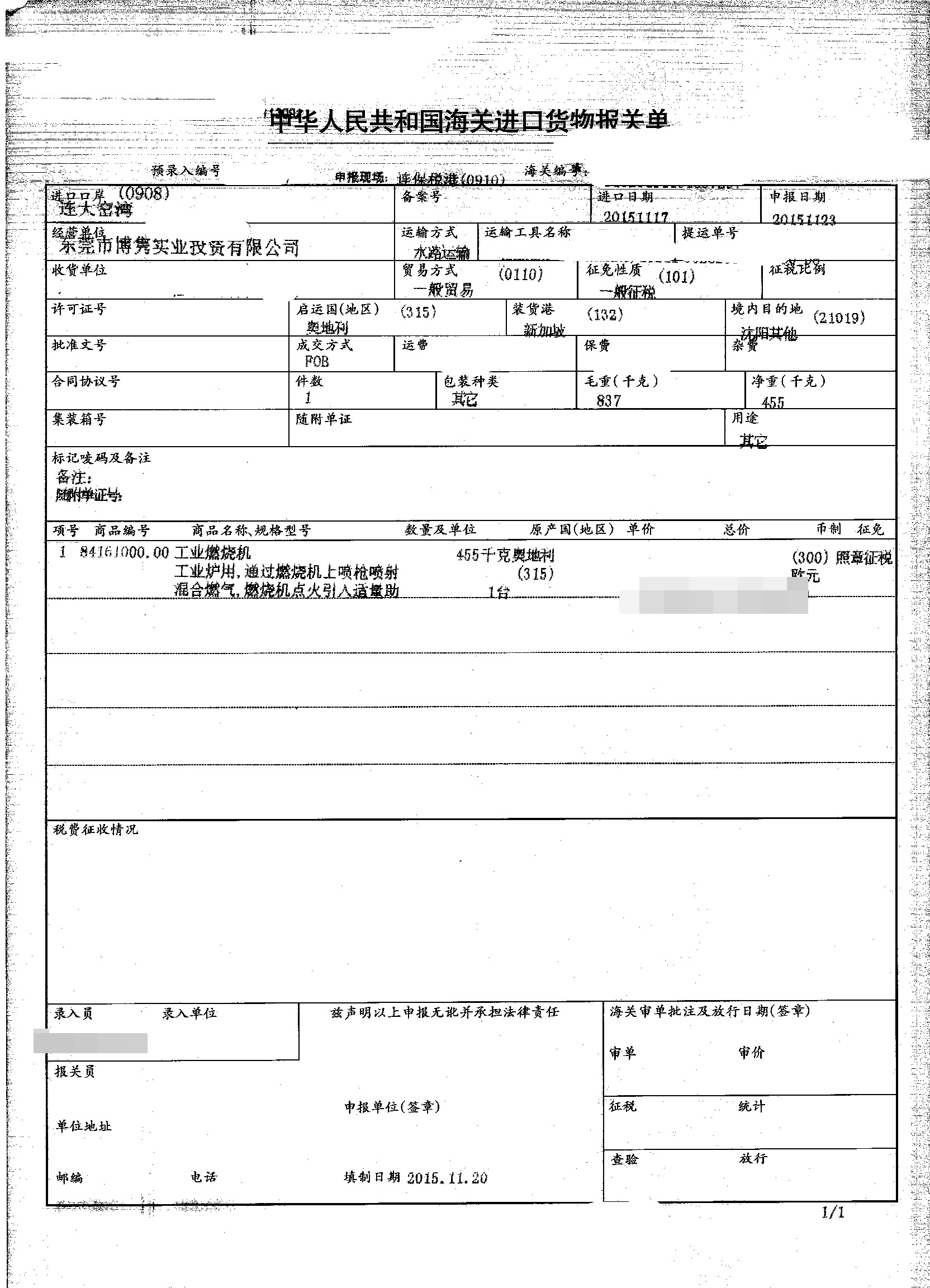 三、工業(yè)燃燒機進口報關(guān)案例展示