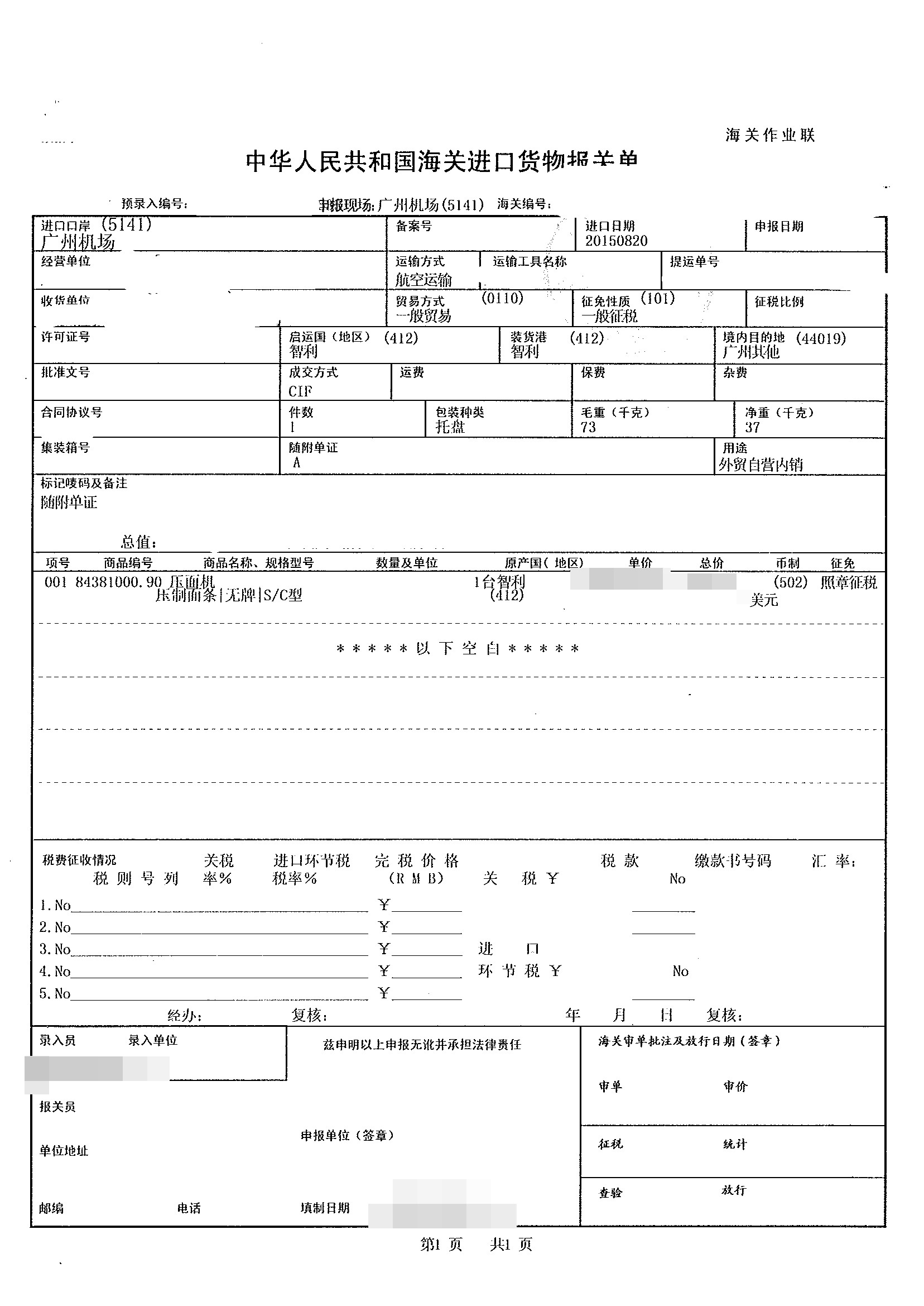 二、壓縮機(jī)進(jìn)口報關(guān)案例展示
