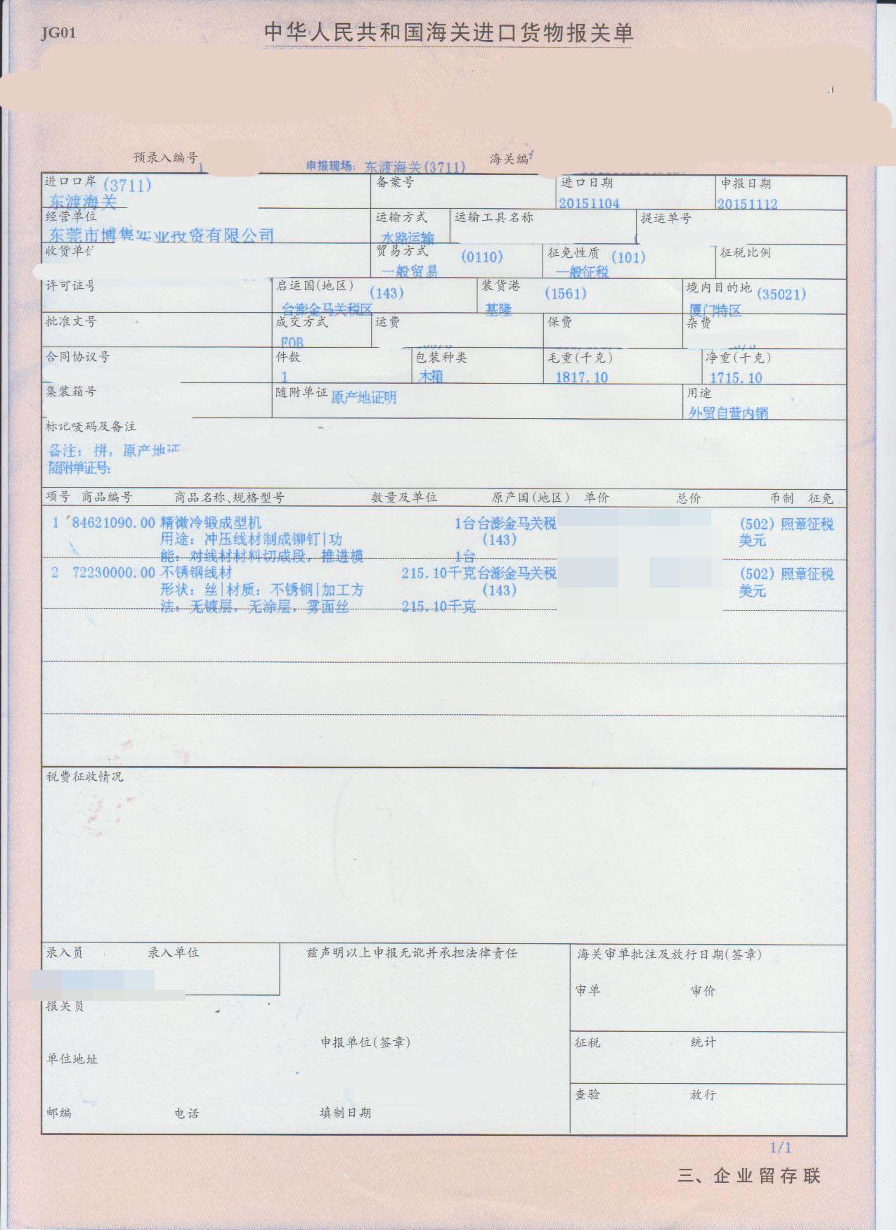 一、精微冷鍛成型機進口報關(guān)手續(xù)