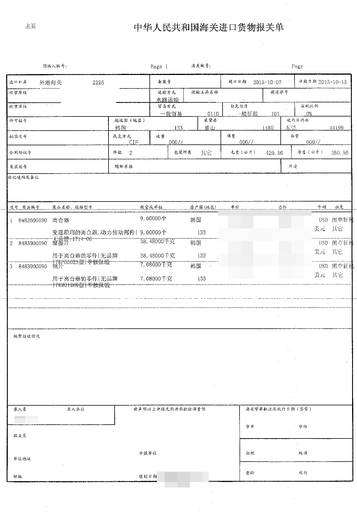 三、離合器進(jìn)口報(bào)關(guān)案例展示